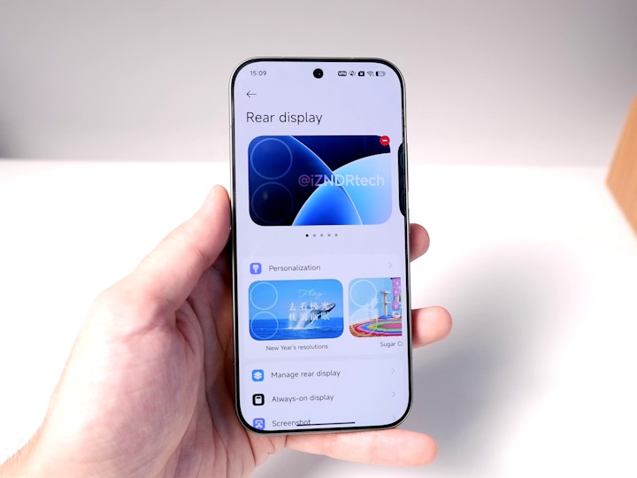 Многие функции заднего экрана не работают за пределами Китая, но вывести любую надпись, время или использовать его как видоискатель камеры можно без проблем