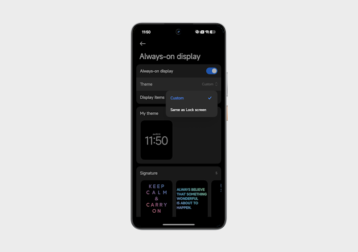 Настройки AoD находятся в разделе оформления системы, хотя я бы отправил их в «Экран»