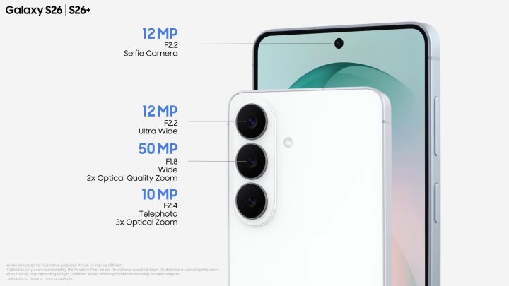 Чего не скажешь о базовой и Plus-версиях. Это младшие модели относительно Ultra, но они тоже входят в флагманскую линейку. И только вдумайтесь: камеры в них не меняются уже пять поколений! Последний раз Samsung обновляла «железо» в своих младших флагманах, когда выпустила Galaxy S22 и S22 Plus. С тех пор из года в год они используют те же сенсоры и даже оптику. Или, точнее, сенсоры и оптику с теми же параметрами, — модели матриц, возможно, и менялись. Это относится, в том числе, и к свежим Galaxy S26 и Galaxy S26 Plus, которые вышли в феврале 2026. Для смартфонов, которые стоят как полноценные флагманы, это такое себе «достижение».