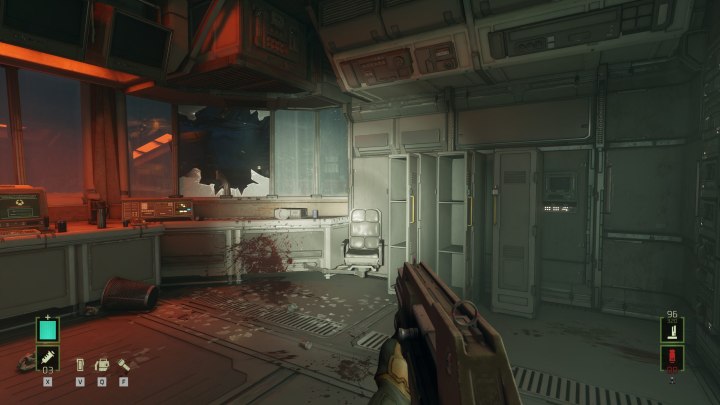 Вступление демонстрирует разные игровые элементы и механики, которые не связаны со стрельбой —подключение к терминалам, открытие дверей с помощью выстрела, ремонт и мини-игра с настройкой электроцепи, чтобы подать питание на нужную дверь. Попутно мы собираем припасы и изучаем разные шкафчики, наблюдая кровавые следы и разбитые окна. Многие объекты можно брать в руки и бросать — смысла в этом нет, просто осталось в наследство от VR-версии, где все их можно вертеть, а из ящиков игрок вытряхивал припасы.