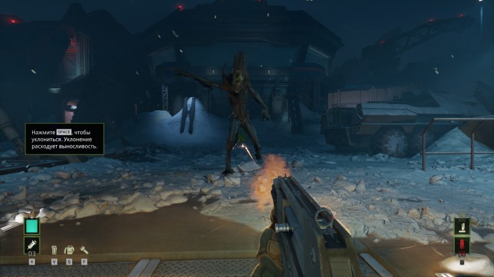 Дальнейшие стычки демонстрируют чудеса отвратительного искусственного интеллекта. Ксеноморфы передвигаются по потолку и стенам, но спрыгивают в странных местах, иногда избегая нас или наворачивая круги в одной точке. Они могут даже где-то потеряться — метка не сканере рядом, а монстр никак не вылазит. Реакция на попадания отвратительная, импакта от оружия нет. Передвижения у героини немного скованные, а прицеливание очень медленное. Радует только аутентичное киношное стрекотание винтовки.