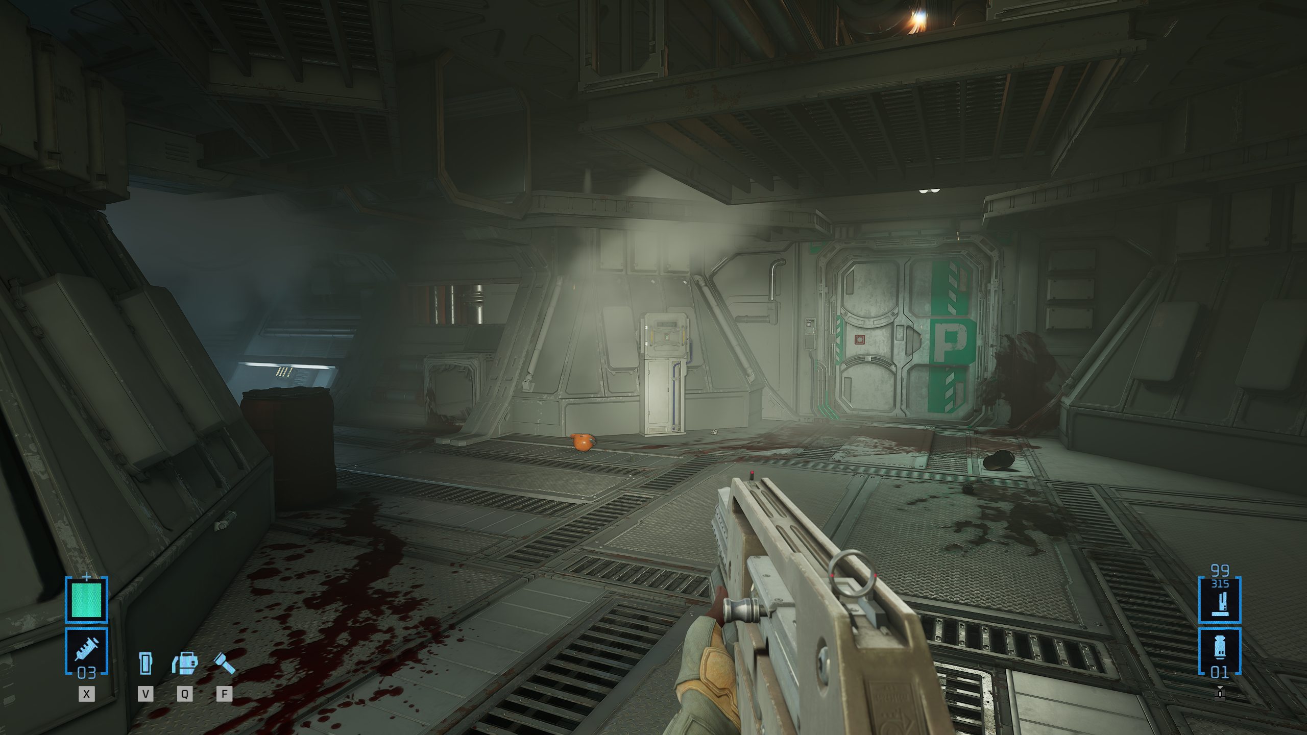 Добавьте к этому пиканье сканера движения в руке, приближающиеся точки и внезапное появление монстров из вентиляционного канала под потолком — выглядит и ощущается это жутковато. А если монстров несколько, то даже при полном боезапасе есть шанс пропустить несколько смертельных ударов. Хотя игра пытается прикинуться шутером, это больше Survival Horror. Поэтому инертное управление и медленное прицеливание можно воспринимать как жанровые условности. Даже наличие мощной винтовки не позволяет чувствовать себя уверенно, потому она чертовски быстро расходует боезапас, а на большой дистанции малоэффективна из-за большого разброса. Это заставляет быть аккуратнее при стрельбе, периодически переключаться на пистолет и обшаривать каждый угол в поисках боеприпасов.