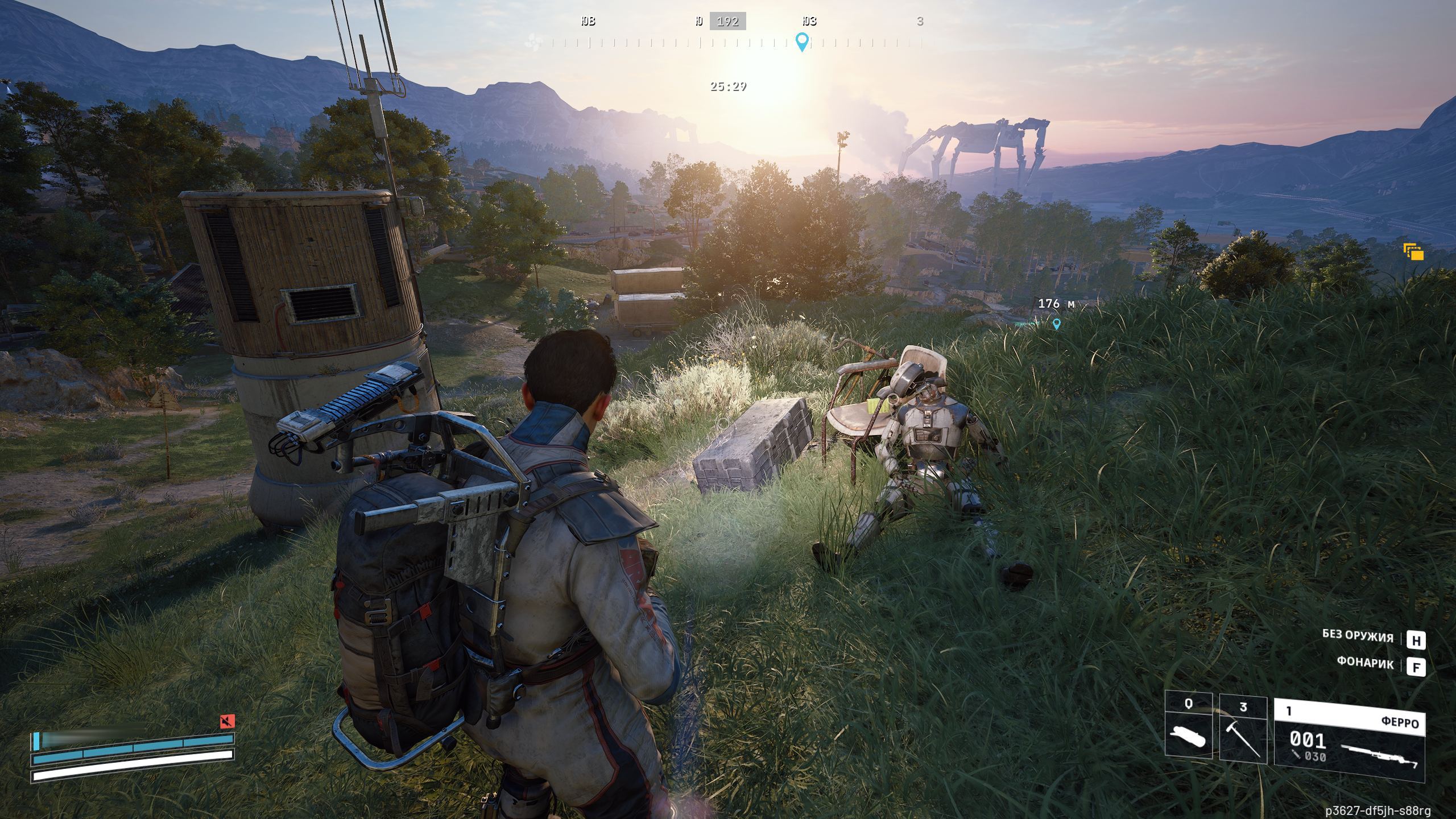 Если говорить про врагов, то роботы-арки разбиты на несколько категорий. Больше всего летающих дронов — от малых разведчиков до больших громоздких машин с мощным оружием. Также есть шагающие машины, вплоть до огромного Матриарха. Есть прыгающие арки, шары, турели и еще парочку машин. Каждый опасен по-своему и у каждого свои уязвимые места. У летающих дронов слабое место — это двигатели, а некоторых наземных роботов лучше бить в сочленение конечностей.
