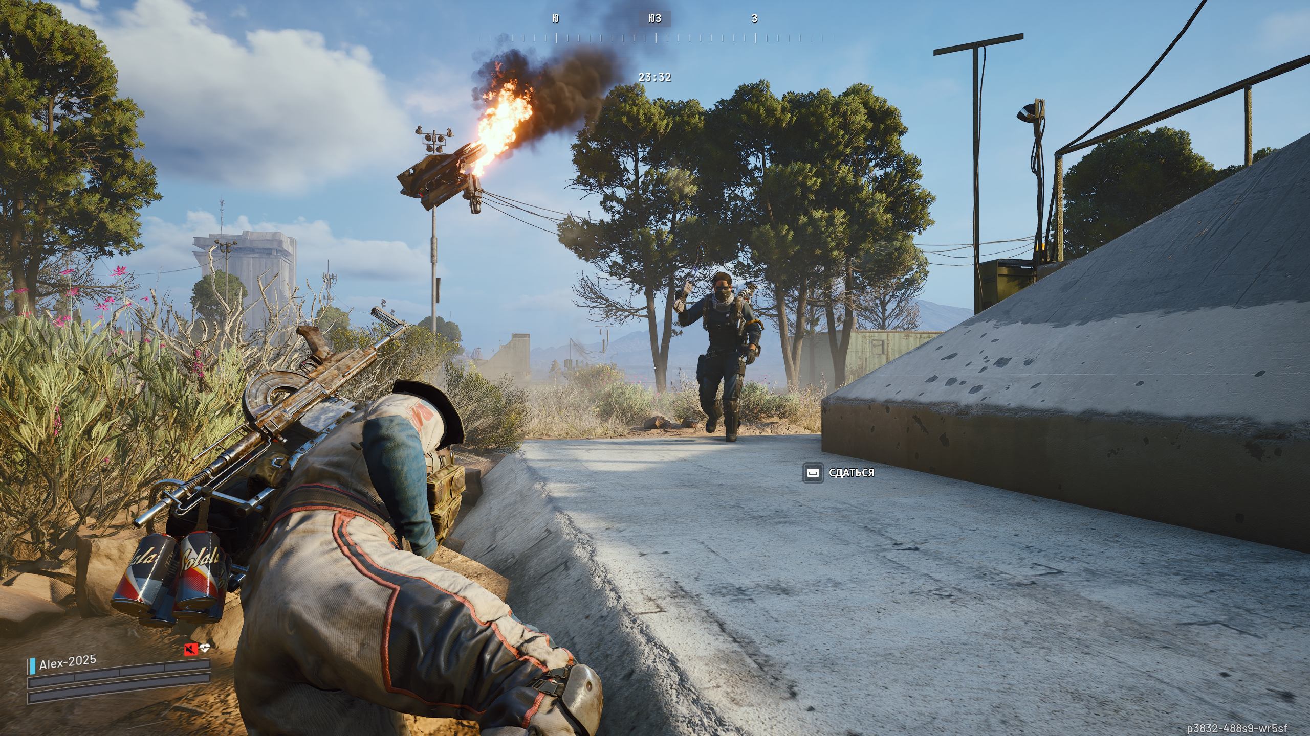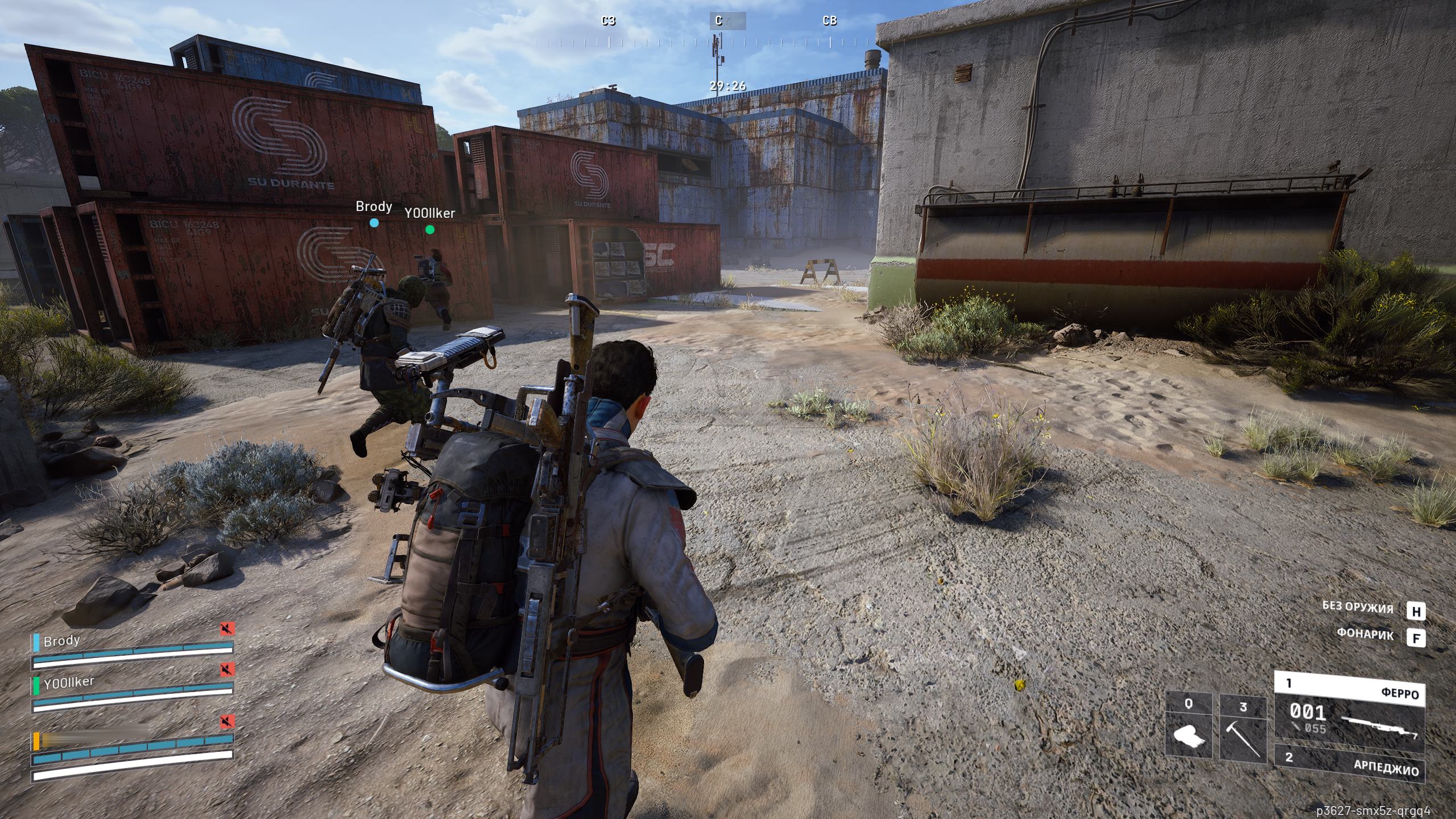 Что касается взаимодействия живых игроков, то многое зависит от выбранного режима. Вы можете подключаться к игре в одиночку или в составе команды из трех игроков. В соло-режиме игра более дружелюбная, игроки часто игнорируют друг друга, занимаясь поисками добычи. В сложных ситуациях они могут даже помогать друг другу. Если вы залезли в какое-то опасное место, то шансы на такую кооперацию даже возрастают. При этом коммуникация максимально простая благодаря быстрому меню команд, и фраза «Don't Shoot» тут является основной. Услышали кого-то рядом, подали мирный знак и спокойно действуете дальше. Бывает такое, что прокачанный игрок сбрасывает вам какой-то чертеж или оружие, если они ему не нужны.
