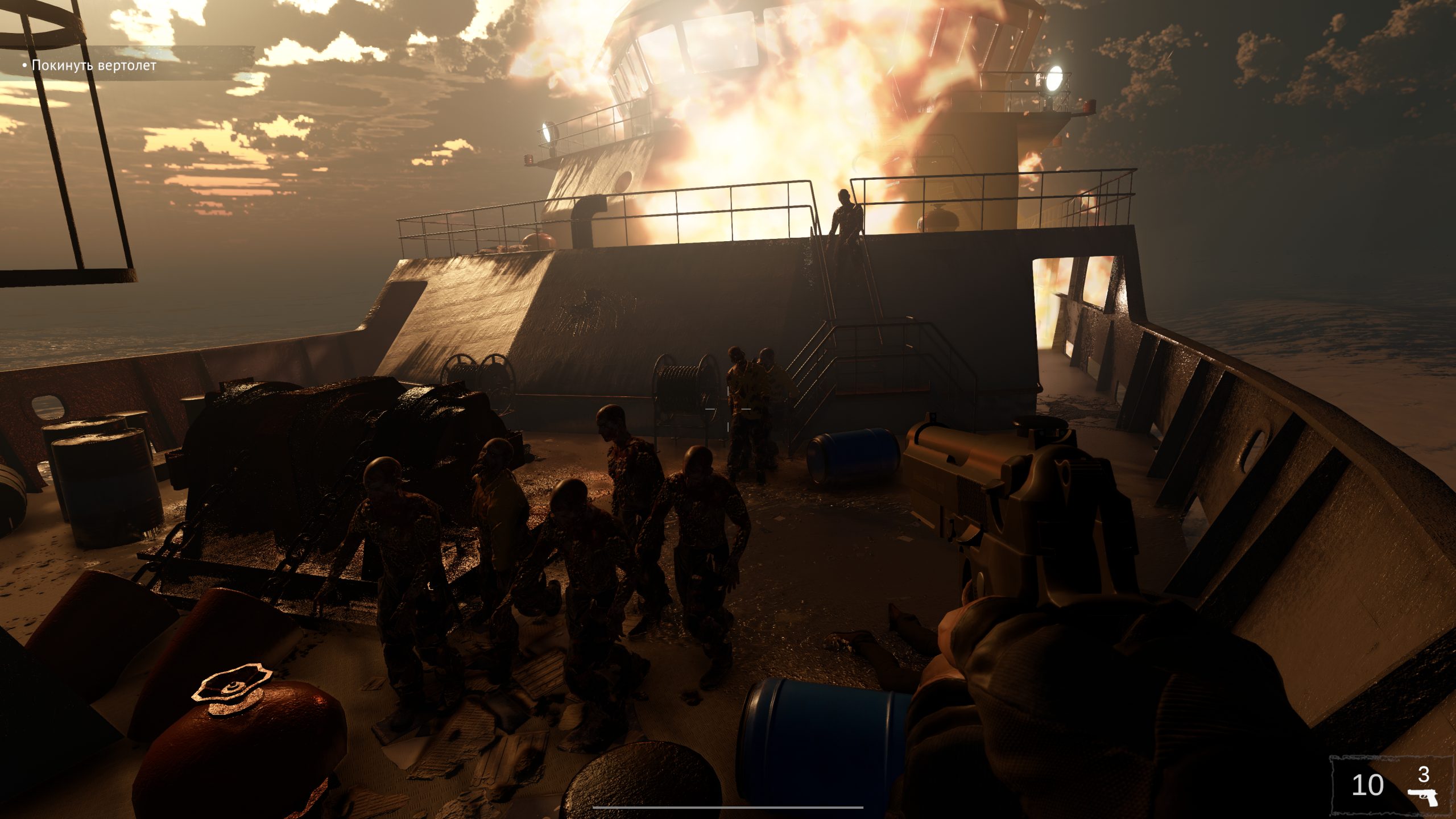 С первых минут становится ясно, сто с Beneath что-то не так. Герой медленно и монотонно бредет по морскому дну, общаясь с дочерью по связи. Потом нечто странное происходит на поверхности, и протагонист начинает также медленно и скучно идти назад. После подъема его батискафа на корабль мы наблюдаем трупы и свидетельства какого-то внезапного нападения. А через пару минут трупы поднимаются, превращаются в зомби и пытаются нас сожрать. В этот момент прилетает вертолет, начинает поливать все огнем из пулеметов, но его хватает щупальце и уволакивает под воду. Такое описание в целом звучит неплохо и интригующе, но все выполнено достаточно криво — от движений до сюжетных сцен и простых декораций.
