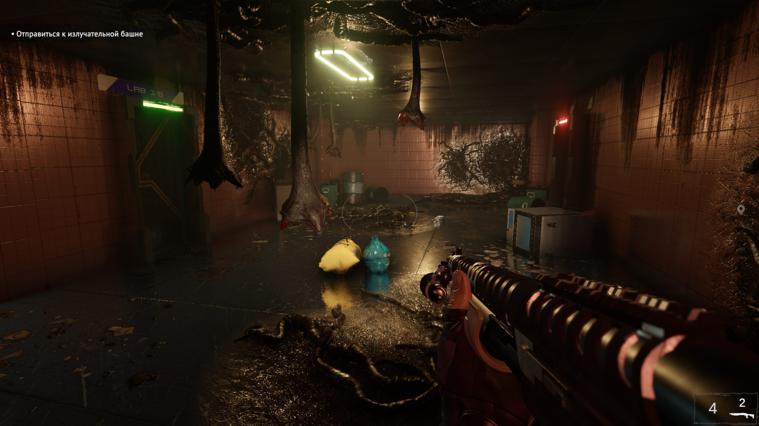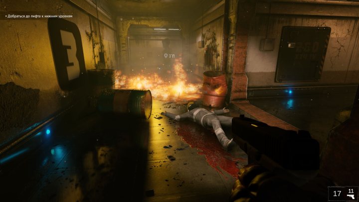 После этого дурдома герой проваливается в забытье и приходит в себя на какой-то научной станции. Тут начинается хождение по однотипным коридорам в поисках того, как отпереть дверь с помощью карточки доступа или компьютера. Иногда попадаются какие-то персонажи и изредка бывают попытки напугать нас видениями. Игра очень медленно набирает обороты и начало практически лишено экшена. Но когда нам опять выдают пистолет, то это не приносит радости. Оружие ощущается плохо, противники никак не реагируют на пули и легко выдерживают даже несколько попаданий из в голову. Все это сочетается с какими-то вязкими инертными движениями героя и полным отсутствием прыжков. Поэтому несколько перевернутых шкафиков в коридоре превращаются в преграду, которую приходится обходить через соседние помещения.