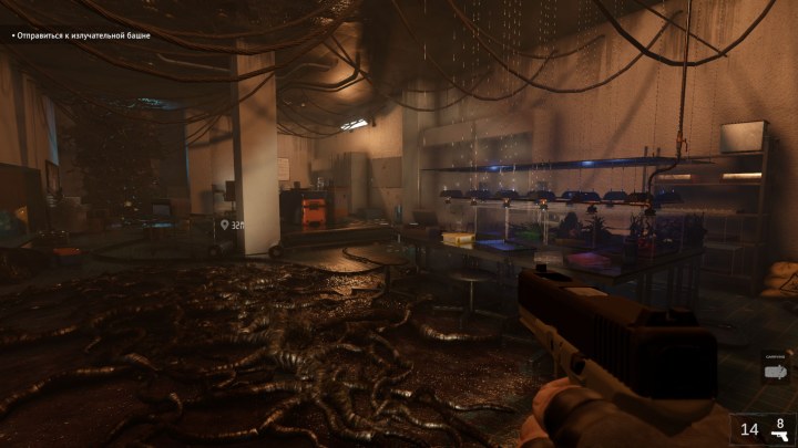 В отдельные моменты Beneath демонстрирует, что авторы действительно вдохновлялись F.E.A.R. Тут много офисных и лабораторных помещений, где от попаданий пуль отлетают объекты и частицы, а от некоторых колонн могут отлетать куски бетона. Но это не физические, а визуальные эффекты, которые реализованы весьма посредственно. А темп перестрелок не способствует тому, чтобы вы мчались в толпу компьютерных болванчиков, поливая все вокруг свинцом. Такое безрассудство чревато тем, что вас быстро пристрелят или загрызут.