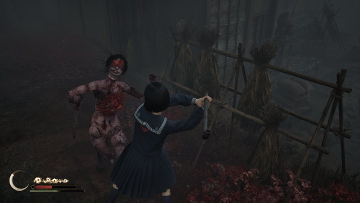 Первое время Хинако может только убегать и шарахаться по закоулкам. Но потом она подберет кусок трубы, чтобы вступить в открытое противостояние. Боевая система предлагает быстрый и затяжной сильный удар вместе с уклонениями и парированиями. Не случайно некоторые увидели в игре аналогии с Souls-играми, но такое сравнение поверхностное. Хотя на фоне других игр серии это действительно крепкая и хорошо отлаженная боевая система с четким контролем, но и с высокими требованиями к реакции игрока.
