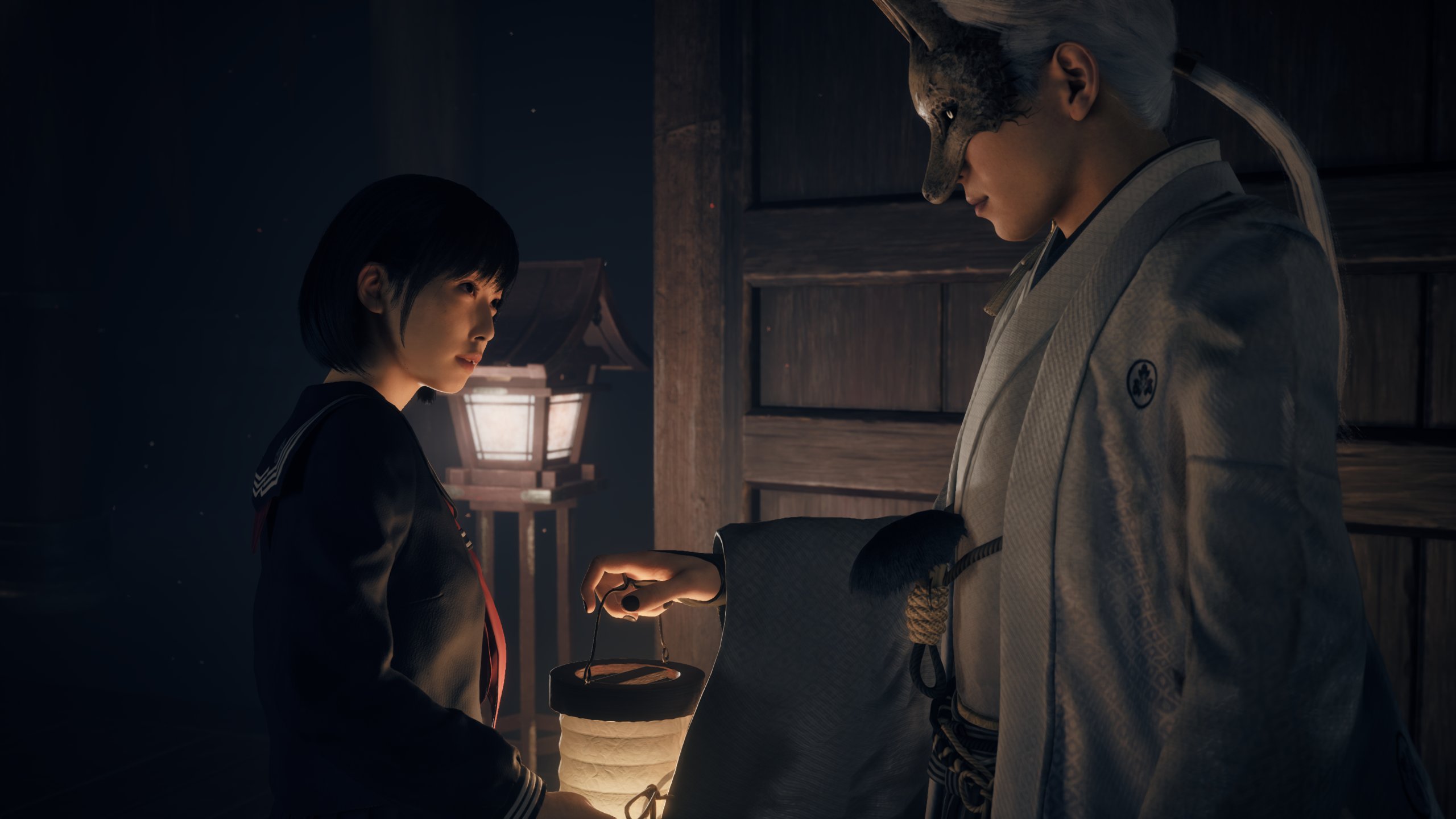 Например, Хинако нужно пройти несколько этапов на рисовом поле, где стоят застывшие «манекены». Есть подсказка с указанием на то, какая фигура вам нужна. Если вытащить колышек из неправильной фигуры — начинается сражение, а если угадали — фигура укажет направление к следующей загадке. Выполнено очень атмосферно и интересно, но не все записки соотносятся с позой манекенов.