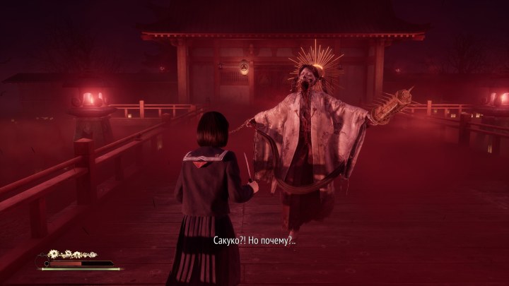 Главное, что цепляет в Silent Hill f — это странное сюрреалистичное повествование, которое ставит много вопросов и дает мало ответов. При этом героиня периодически проваливается из мира туманного городка в некую мистическую реальность, пропитанную духом японских синтоиских верований. Травма или внезапное потрясение в «обычной» реальности приводит к пробуждению в ином мире, где развиваются свои события. Тут все связано с персонажем в лисьей маске, который выступает и как защитник, и как возможная угроза. А происходящее часто напоминает изучение запутанных лабиринтов и храмовых комплексов с опасными и жуткими монстрами, которые не умирают навсегда и со временем возрождаются.