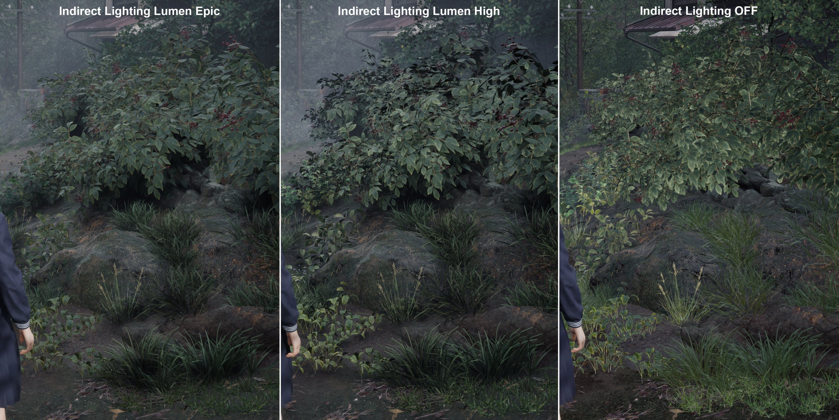 А вот при полном отключении Lumen пропадает объемный туман, что полностью убивает всю атмосферу. Так что для непрямого освещения отключать Lumen нельзя ни в коем случае.