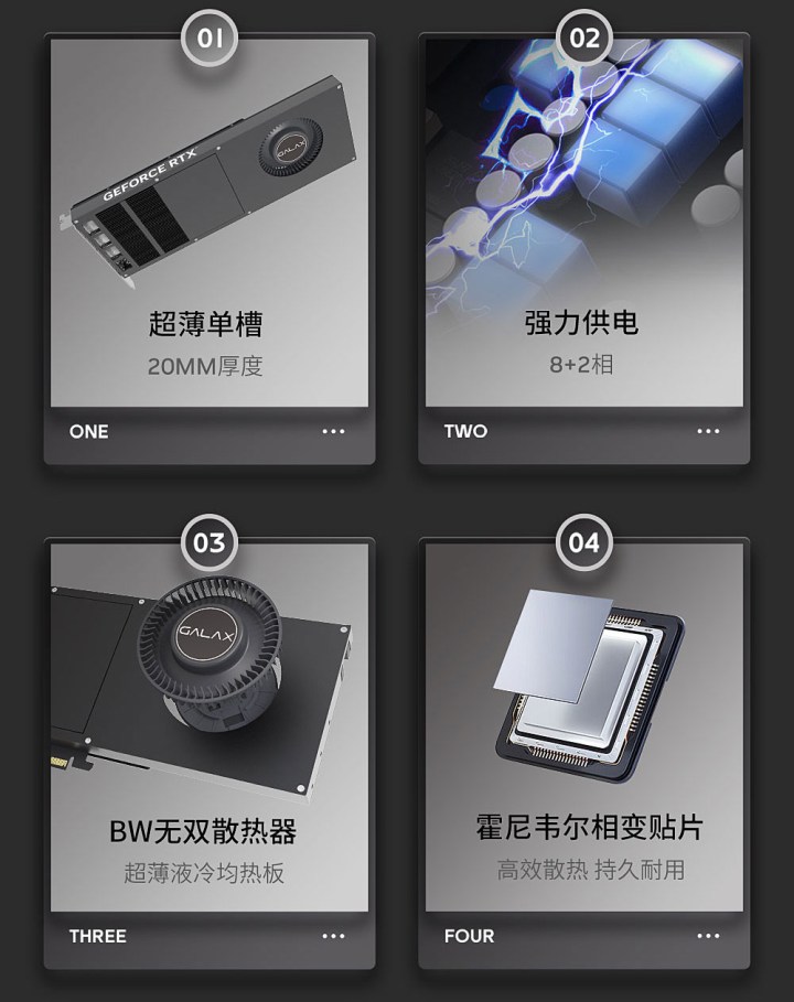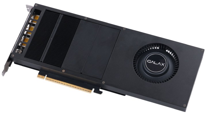 Толщина новой видеокарты GALAX GeForce RTX 5060 Ti лишь 20 мм. Она использует охлаждение турбинного типа с испарительной камерой и тонким радиатором, сбоку от которого расположен радиальный вентилятор.