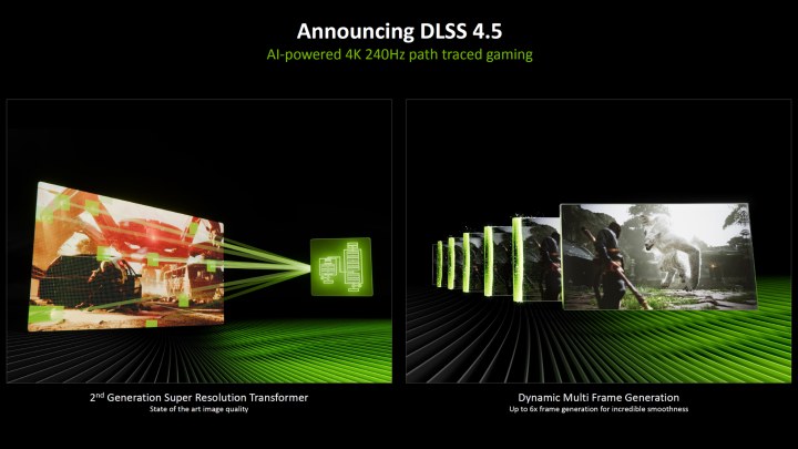 Год назад вместе с новым поколением видеокарт GeForce RTX 50 была представлена технология DLSS 4 на базе модели Transformer. А теперь NVIDIA представляет обновленную версию DLSS 4.5, которая обеспечит лучшее качество картинки и позволит внедрить новый режим Multi Frame Generation.