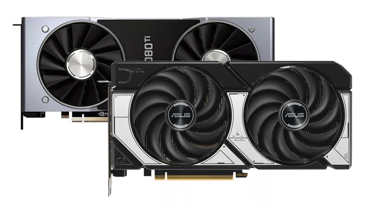В 2018 году компания NVIDIA выпустила видеокарты GeForce RTX 20-й серии на архитектуре Turing. Они предложили новые аппаратные возможности для ускорения нейронных операций и аппаратной трассировки лучей, проложив путь для внедрения новых технологий в игровую графику. Сейчас мы видим, что апскейлинг DLSS на основе нейросетей стал повсеместным, и все другие производители GPU предлагают свои альтернативы. В 2025 году вышли GeForce RTX 50-й серии, которые стали четвертым поколение видеокарт с трассировкой и тензорными блоками. Вместе с ними дебютировала обновленная технология DLSS 4, а новая архитектура Blackwell получила ряд новых нейронных технологий для оптимизации рендера в будущих играх. Также стало ясно, что NVIDIA делает большую ставку не генерацию кадров. С другой стороны, прогресс в кремнии явно замедлился, и чипы для GeForce RTX 40/50 выполнены на базе одного техпроцесса. Каков реальный прогресс в производительности между первым и последним поколением? Мы решили ответить на этот вопрос, сравнив GeForce RTX 5070 и GeForce RTX 2080 Ti в большом списке современных игр.