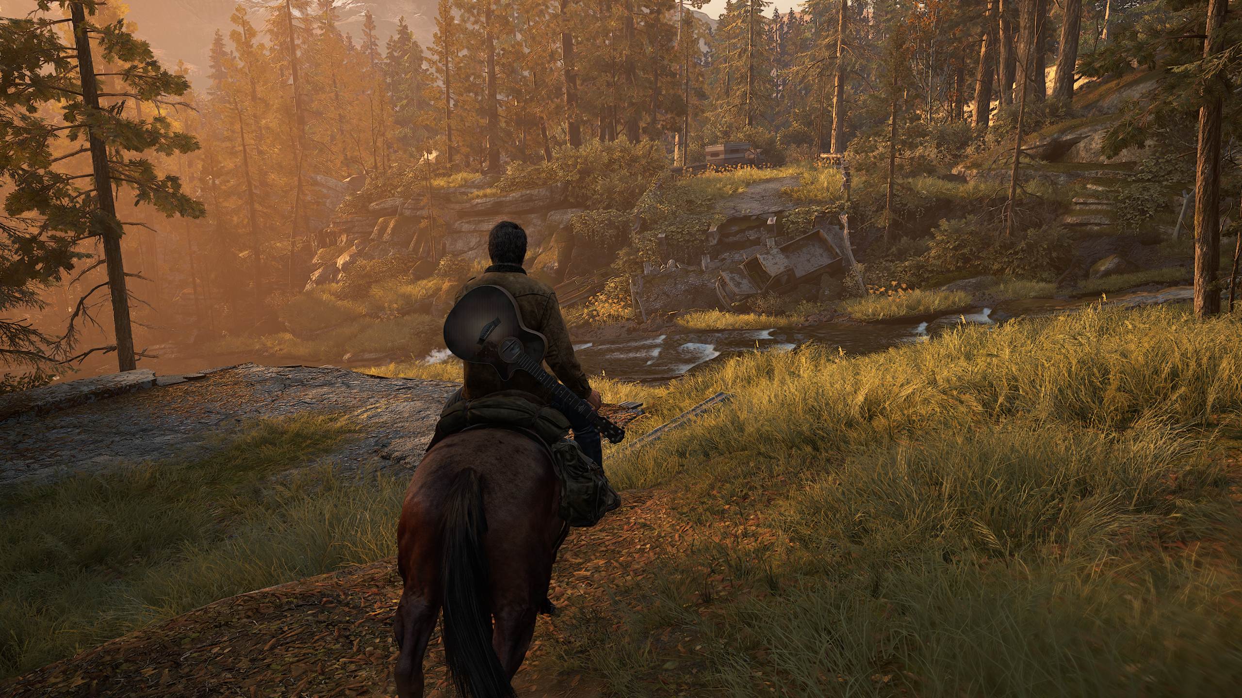 Повторялась прогулка на лошадях в прологе через пересеченную местность c разным ландшафтом.